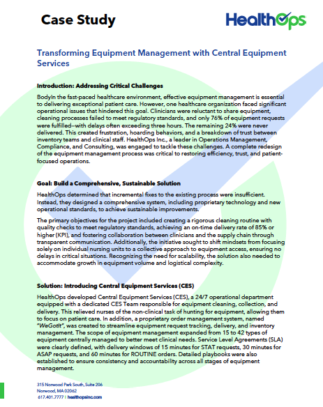 By choosing HealthOps as your Equipment Management needs, you partner with a team dedicated to optimizing hospital operations and enhancing patient care. Let us help you streamline your equipment management and focus on delivering exceptional healthcare.